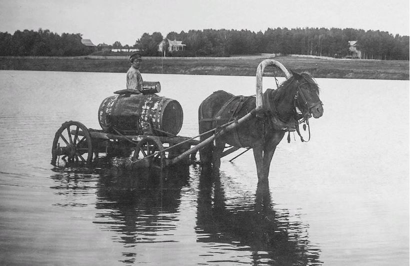 В русских деревнях питьевая вода из колодцев была доступна каждому. В городах ситуация была более сложной. Первая водопроводная труба появилась в Москве только в конце XVIII века, в то время как водопроводная вода в квартирах в городах стала широко доступна лишь в начале XX века. До этого времени горожанам приходилось покупать воду у водовозов, которые передвигались на двуколках с цистернами для воды: зеленые цистерны с речной водой (для мытья и т. д.) и белые — с питьевой. Зимой возили воду на санях.