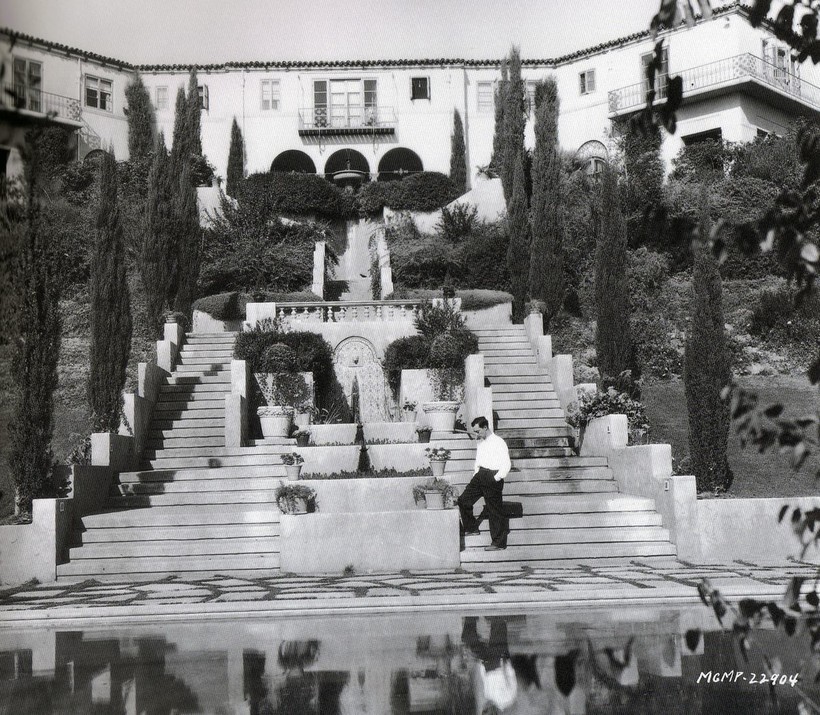 Герой-любовник немого кино Рудольф Валентино купил дом над Беверли-Хиллз для себя и своей жены в 1925 году. Построенный в 1923 году, 16-комнатный дом располагался на 8 акрах, которые Валентино заполнил большим гаражом для своих многочисленных автомобилей, помещениями для персонала, псарнями для собак и конюшнями для породистых лошадей. Двухэтажный дом был спроектирован в стиле испанской виллы с красной черепичной крышей, оштукатуренными стенами, деревянными потолочными балками и множеством каминов.