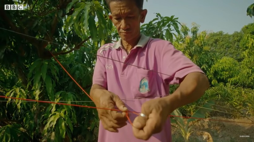 «Владелец фермы призвал эту армию миниатюрных воинов, чтобы защитить свой урожай. Муравьи будут поедать любых вредителей, которые посягнут на их территорию. Хозяин фермы натягивает между деревьями веревки, чтобы муравьи могли кочевать с одного дерева на другое и расселились по всему саду. Так насекомые расширяют свои империю, защищая сад. Здоровые муравьиные колонии позволяют использовать меньше пестицидов, чтобы отпугивать других насекомых», — говорит диктор.