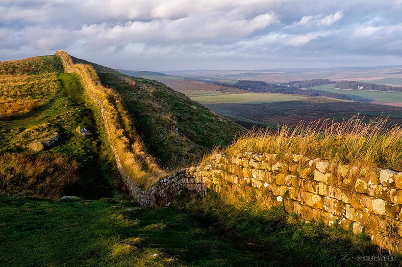 Стена Адриана, построенная во II веке н. э. для защиты северной границы Римской империи на Британских островах, впечатляет своей длиной, но не внушительными размерами. Историки утверждают, что когда-то она достигала 11 футов в высоту и 8 футов в ширину.