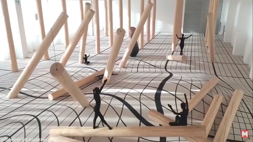 Европейский бренд коврового дела решил пересмотреть свои стандарты и сделать ковер с оптической иллюзией, который, как и в случае с плиткой, будет давать «неровный» пол. У этого производителя много клиентов, таких как отели и гостиничные комплексы, выставочные залы и галереи. Покупателей привлекают необычные узоры и иллюзорные эффекты. Специально для танцевального мероприятия компания изготовила ковер с искаженным сетчатым рисунком, который бы изображал корневую систему леса.