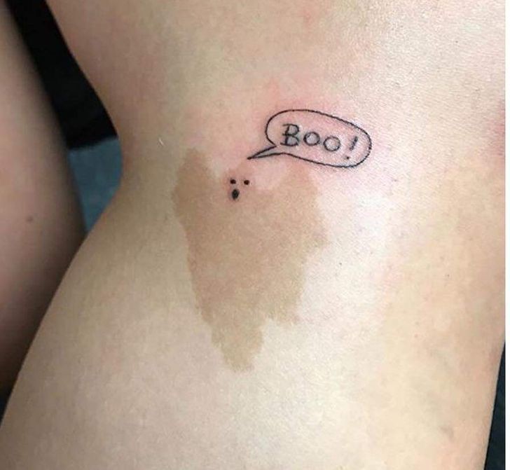 Этот парень превратил свое родимое пятно с помощью татуировки в картинку, которая удивляет всех вокруг и веселит его самого изо дня в день.