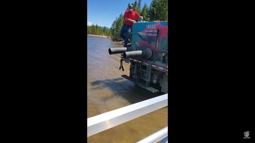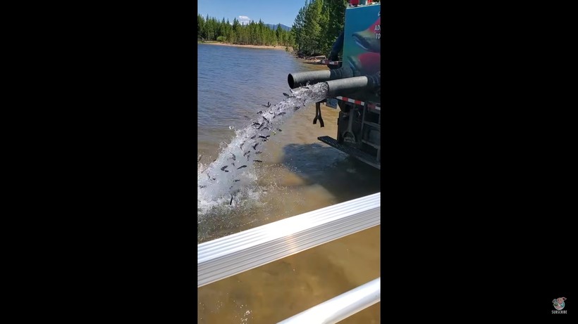 Зарыбление — это заселение водоемов молодой рыбой, которая будет там расти и размножаться. В США, где рыбалка — популярное увлечение, часто проводятся такие мероприятия. Пример того, как это проходит, — в ролике, приложенном ниже, где отец и сын стали свидетелями вброса рыбы в озеро штата Вайоминга. Грузовик подъехал к самой кромке воды, и из двух труб полилась вода с мелкой рыбешкой. Это морская форель, которую так уважают рыбаки и животные вроде медведей и волков.