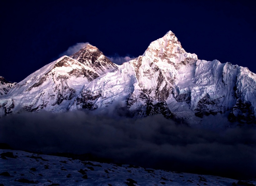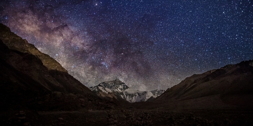 Ночью можно увидеть восхитительное сочетание усыпанного звездами неба и величественно возвышающейся вершины Эвереста.