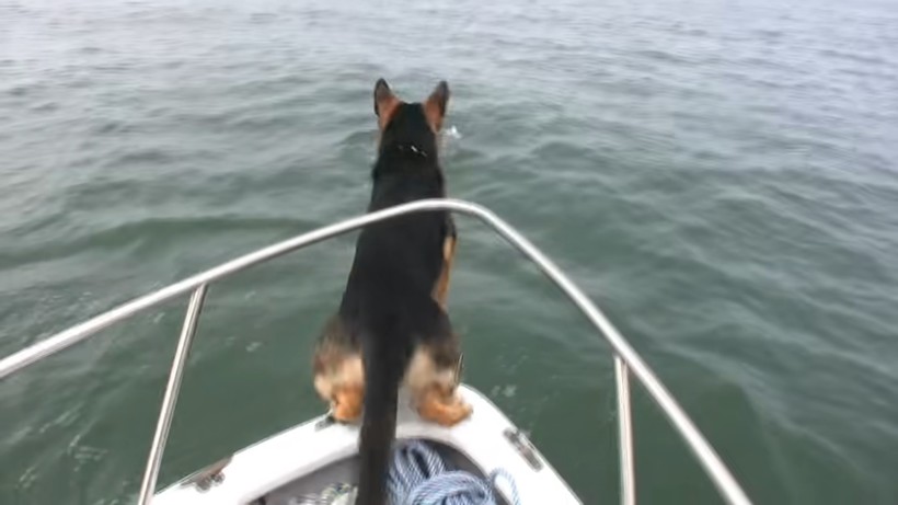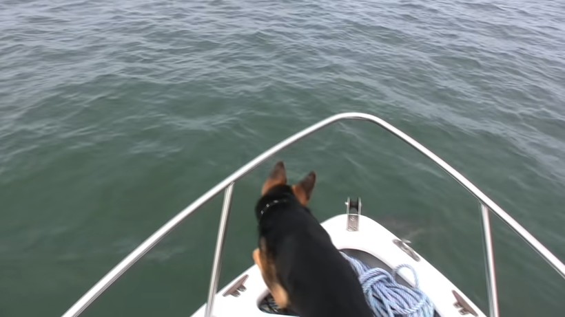 Дельфины очень привлекали четверолапого матроса своими плавными движениями. В один момент любопытство пса достигло своего пика и заставило его броситься к дельфинам, чтобы познакомиться с неизвестными ему до этого дня животными. Это было не самой лучшей идеей, потому что такого поворота событий не ожидал никто из людей, находящихся на лодке. Катер двигался вперед на определенной скорости, поэтому домашний питомец моментально оказался позади.