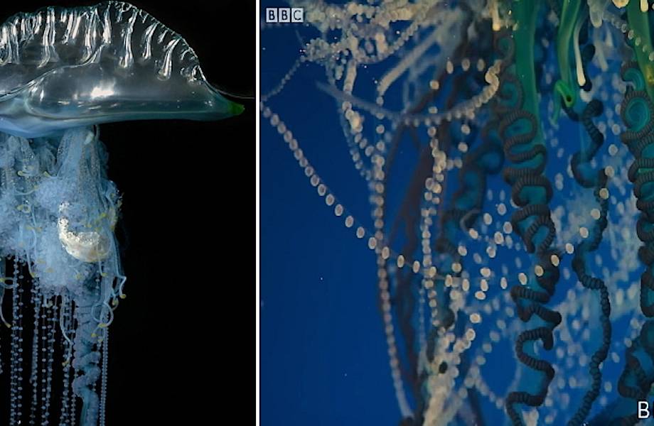 Полюбоваться необычайно красивым существом, португальским корабликом, и понаблюдать за его охотой можно, посмотрев видеоролик компании BBC.