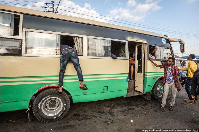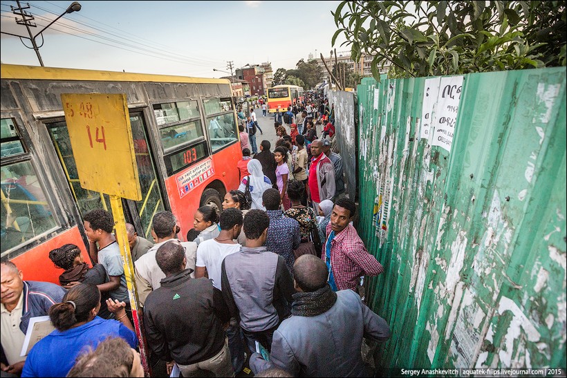 В вечерние часы-пик Аддис превращается в самый настоящий муравейник. Рабочий день здесь почти везде заканчивается одновременно, в 17.00, и начинается сущий ад на улицах и остановках.