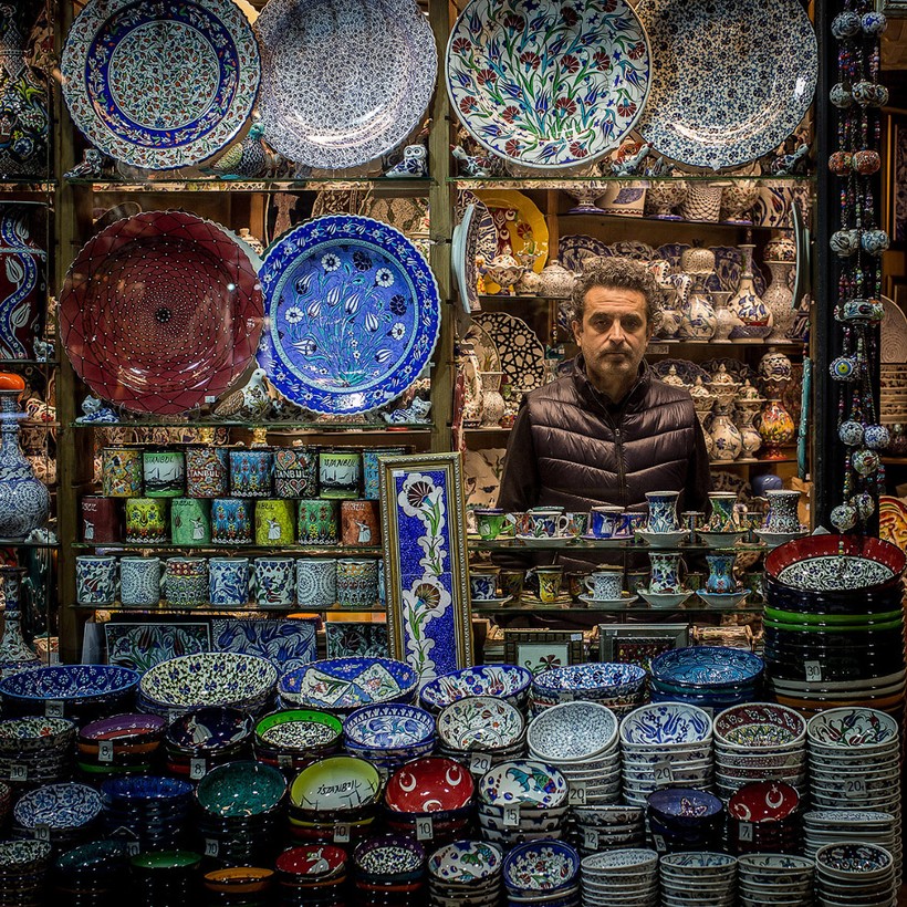 Чарующее изобилие прекрасных традиционных керамических изделий представлено в лавке этого торговца