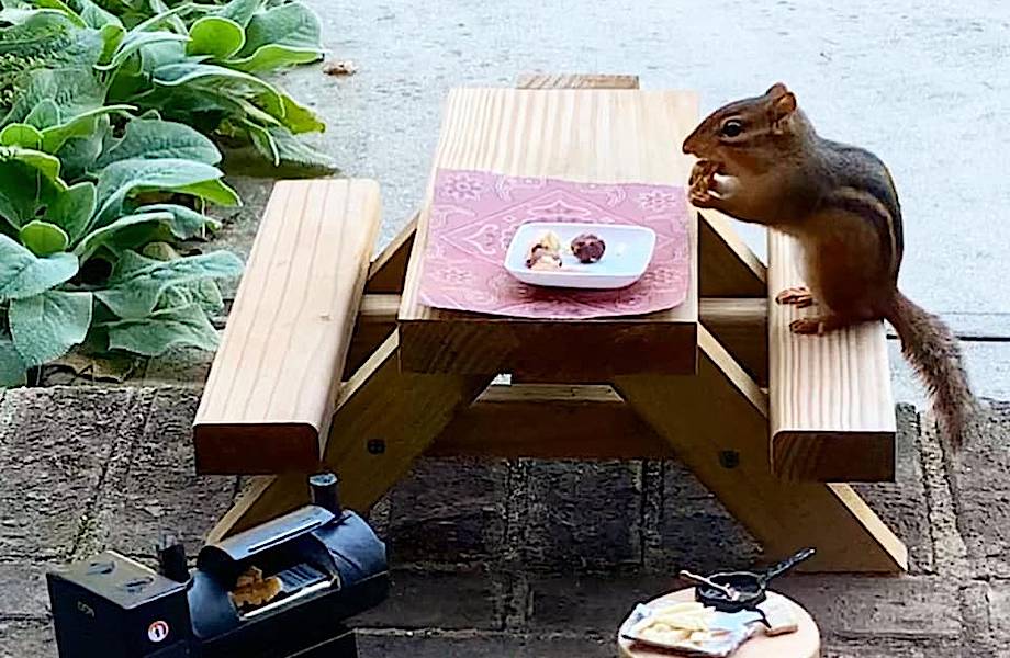 Анжела Хансбергер из Джорджии — ресторанный критик. Из-за пандемии ее работа оказалась в жестких рамках. И она решила на это время заняться домом и обустроить сад. К Анжеле захаживали в гости белки и бурундуки, так что американка решила сделать столик для белок: она хотела закрепить его на заборе, чтобы животным было удобно сидеть.