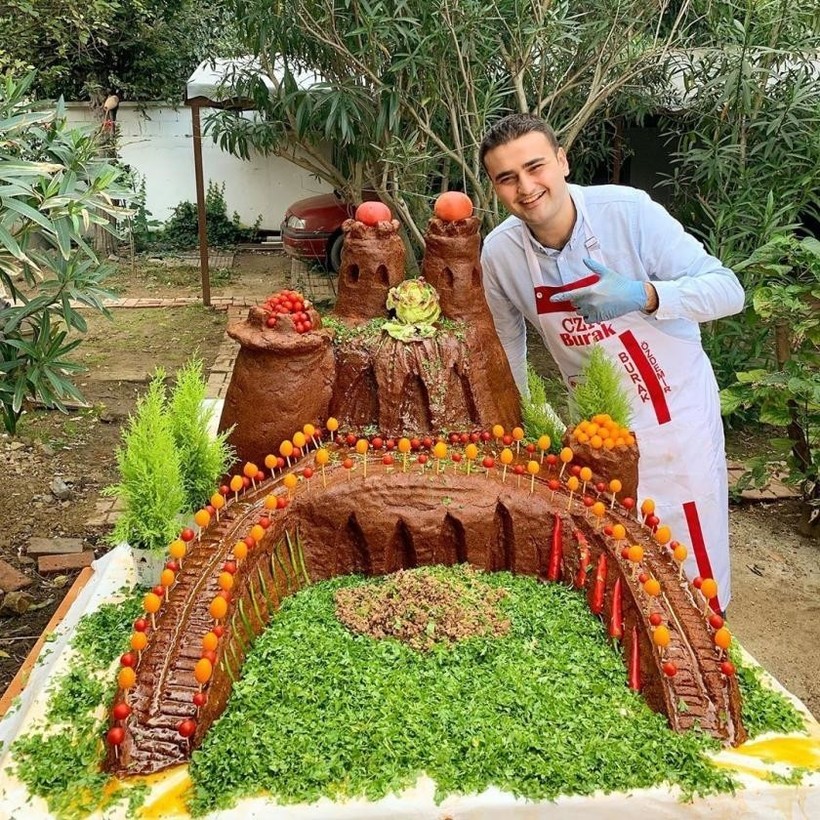 Следующим у нас идет турок по происхождению шеф-повар Бурак Оздемир. Бурак прославился тем, что готовит неимоверно огромные порции национальных турецких блюд и не только. Видео с процессом приготовления Бурак выставляет для своих многочисленных поклонников в социальные сети.