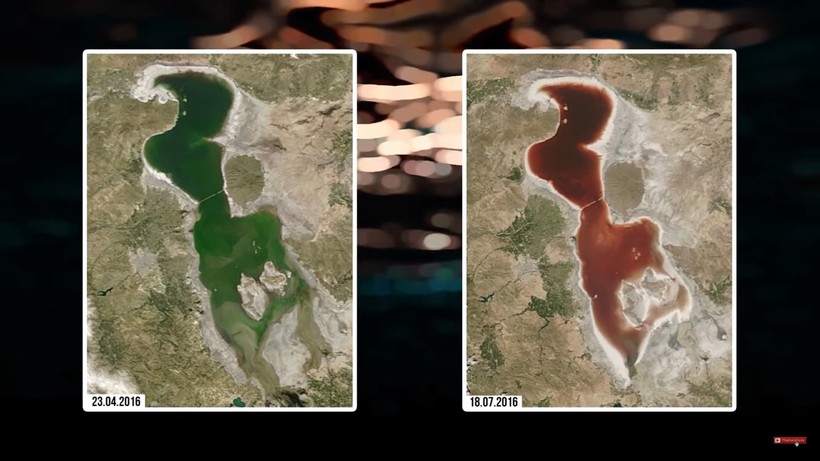 Пользователи интернета были озадачены, когда увидели что одно из озер Ирана из зеленоватого стало кроваво-красным. Это произошло за несколько месяцев, и никто не знает причину. Люди сразу стали высказывать разные догадки. Одни говорили о химическом загрязнении воды, другие о росте бактерий, делающих воду красной, третьи уверены, что «виновниками» являются минералы, которые вступают в реакцию с водой озера.