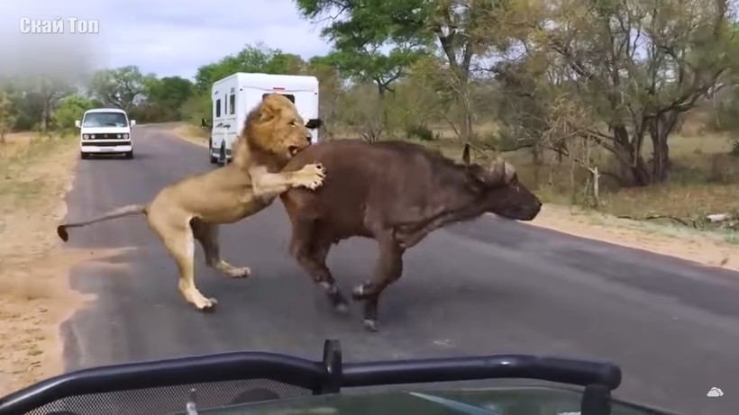 Так, в одном из национальных парков огромный лев с роскошной гривой вышел на дорогу и парализовал движение машин. По правилам заповедников, люди не должны пугать зверей или мешать их деятельности, ведь именно животные — настоящие хозяева парков, а человек — лишь гость. Многие звери привыкли к тому, что там от человека не исходит опасность, а потому они бесстрашно прогуливаются рядом с автомобилями. В данный раз к одному льву присоединились еще некоторые члены прайда. Звери стали рычать, а спустя некоторое время скрылись в саванне.