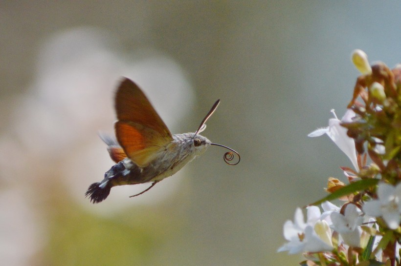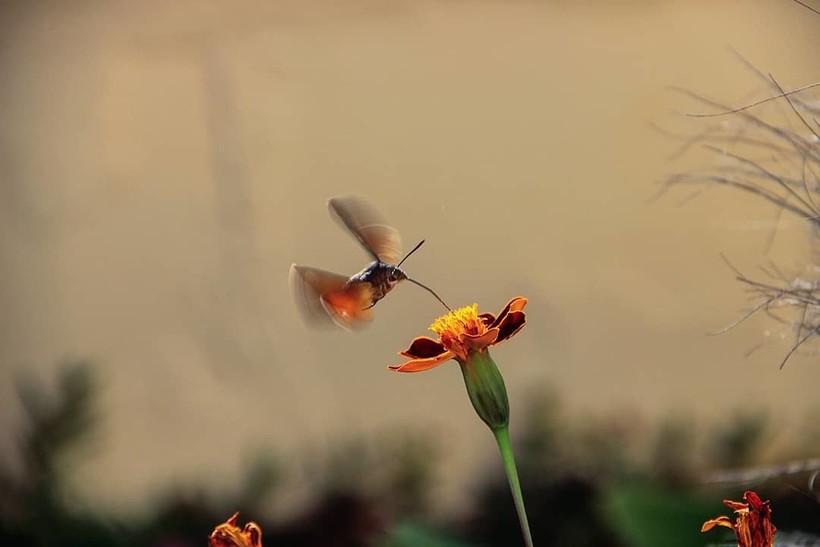 Впрочем, на этом сходство не заканчивается. Так, уникальное насекомое взмахивает крыльями постоянно и даже кушает в полете. Языкан зависает над цветущими растениями, расправляет свой хоботок, который может быть длиннее самого насекомого, и засасывает нектар. Аппетит у такого маленького насекомого феноменальный. Он съедает почти в 1,5 раза больше своего веса.