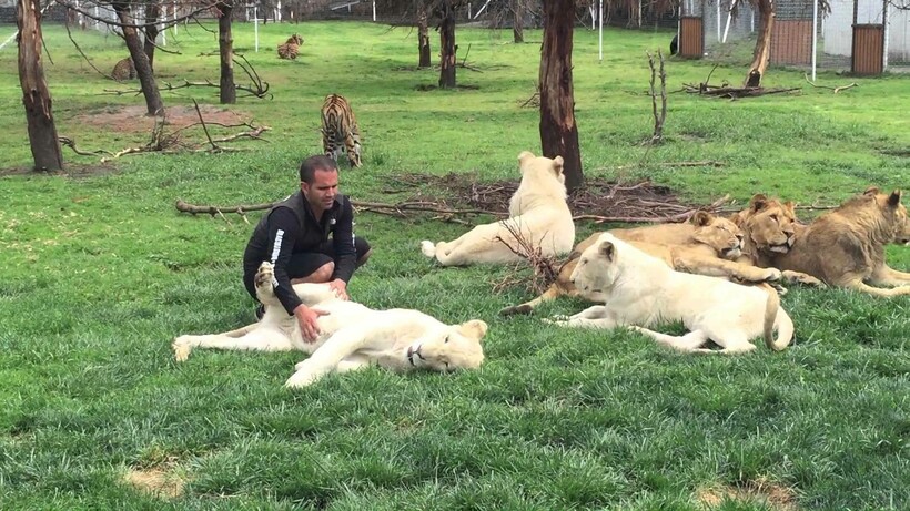 У мексиканского бизнесмена удивительное хобби: он волонтер в центре по спасению больших кошек, и буквально живет среди львов, тигров, леопардов и ягуаров. В один из дней мужчина гладил львицу и не заметил, как сзади на него побежал леопард, чтобы атаковать. Но это увидел тигр и, как в футболе, «перехватил» противника, тем самым защитив человека. Полосатого героя зовут Азелтан. Хотя Эдуардо очень любит своих подопечных, своенравный характер кошек все время заставляет держать ухо востро.