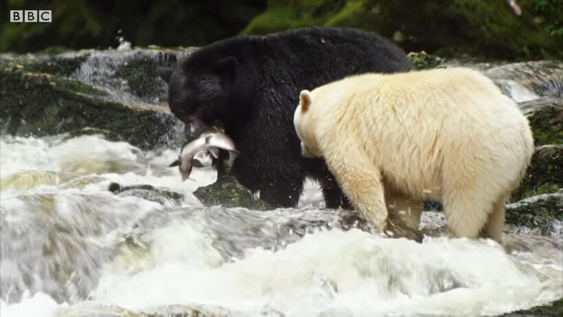 Канадский режиссер Джефф Тернер проводит целый год в этих лесах, наблюдая за мишками и делая интересные фильмы для канала BBC Earth, который специализируется на документальном кино о животных. В этот раз объектом наблюдения стала светлая мама-медведица и ее медвежата. Они вынуждены постоянно бороться за еду и место под солнцем ввиду высокой конкуренции и обилия хищников вокруг. В ролике, который сделал Тернер, показано, как медведица готова отстаивать рыбное место у своего собрата.