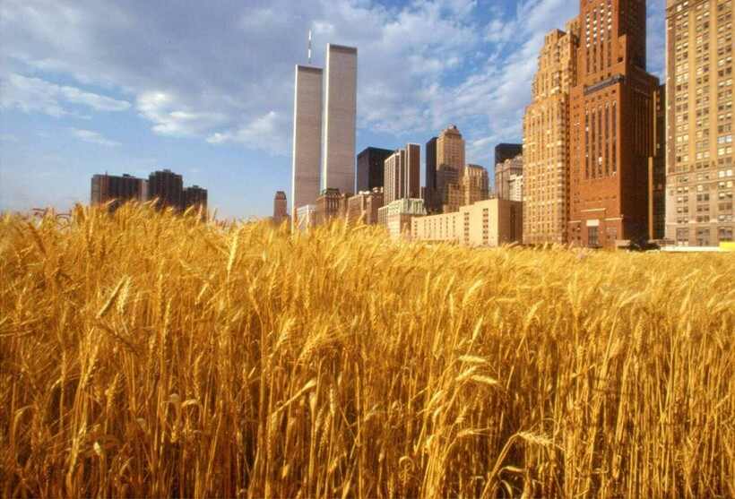 На самом деле поле ― это такая своеобразная художественная инсталляция. Нет, конечно, оно было настоящим, но придумала его художница Агнес Денес. Это сегодня на этой территории находится элитный жилой район Бэттери-Парк-Сити, но до него на протяжении нескольких лет за башнями-близнецами располагалась совершенно неприглядная свалка. Именно тогда на этой территории было принято решение создать произведение искусства, что и поручили Агнес Денес. Но художница, вместо того чтобы построить очередную скульптуру на месте свалки, решила вырастить тут золото пшеницы. И это был, пожалуй, один из самых выдающихся проектов, который когда-либо видел Нью-Йорк.