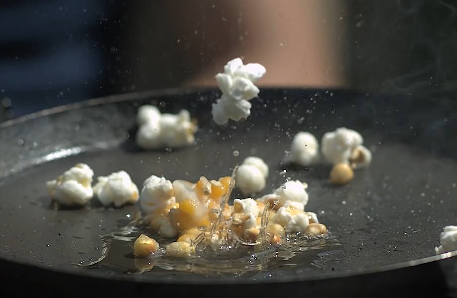 Есть ли смысл смотреть фильм без попкорна? Самые справедливые кинокритики сказали бы, что любой скучный фильм можно спасти небольшим количеством вкусного попкорна. Наверняка, каждый хотя бы раз сталкивался со следующей проблемой. Вы приходите в кинотеатр, а весь купленный на целый сеанс попкорн уже закончился по дороге. Видеоролик ниже позволит замедлить процесс приготовления попкорна, чтобы можно было насладиться каждой секундой этого захватывающего зрелища.