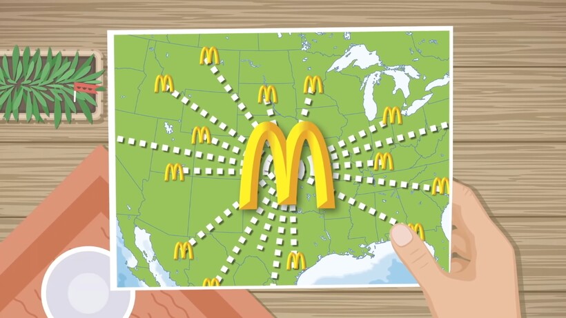 Рэймонд Крок тоже стремился преуспеть в коммерции, но все его задумки не приносили много денег, пока он не столкнулся с McDonald’s. Ему настолько понравилась идея быстрого кафе, что он предложил братьям вместе расширять бизнес, открывая новые точки кафе по всей стране. С одной стороны, Макдональдам казалась эта идея привлекательной, а с другой, у них и так все было хорошо. Тогда Крок предложил купить у них франшизу — разрешение открывать кафе McDonald’s под их именем, платя небольшую долю от прибыли с каждого ресторана. Братья дали добро.