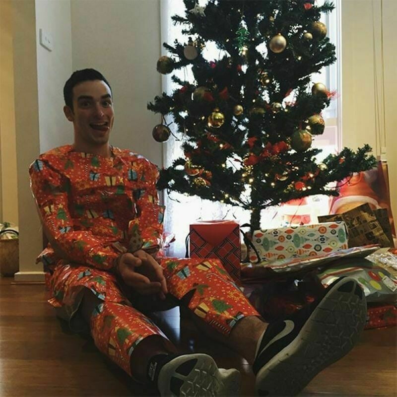 А вот этот парнишка не стал выдумывать что-то необычное, ведь, перефразируя слова песни, «лучший твой подарок — это я!». Молодой человек «оделся» в праздничную упаковку, подарив своей возлюбленной вот такой «скромный» презент на Рождество. Интересно, ей понравился подарок или нет? Его-то уж точно не передаришь и не выбросишь.