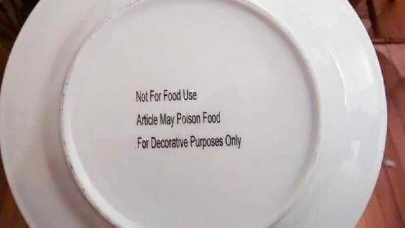 Этот подарок описывает другую поговорку — и смех, и грех. Соседи принесли в качестве рождественского подарка блюдо с печеньем. После того, как с едой было покончено, перевернув тарелку, новые владельцы заметили надпись мелким шрифтом: «Не использовать для еды, может быть опасно для здоровья. Использовать только в качестве декоративного предмета».