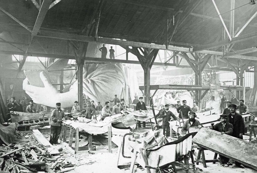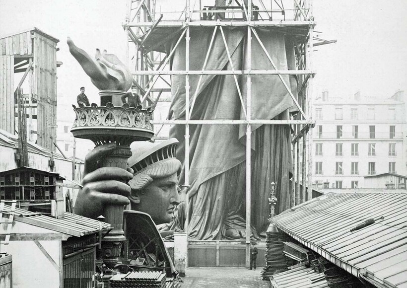 Бартольди и Эйфель, скульпторы, работавшие над этим шедевром, «нарядили» Либертас в мантию, вручили факел с путеводным светом и скрижаль, где римскими цифрами указана памятная дата для американцев: когда была подписана Декларация о независимости. Ну а под ногами этой гордой француженки лежат разорванные цепи, которые символизируют отмену рабовладельческого строя. Скульптура возвышается над нью-йоркской гаванью более 130 лет, и на протяжении этого времени она была неизменна. В отличие от города, горизонт которого менялся и постоянно разрастался. Мы решили собрать все знаковые снимки статуи Свободы на протяжении всей ее истории.