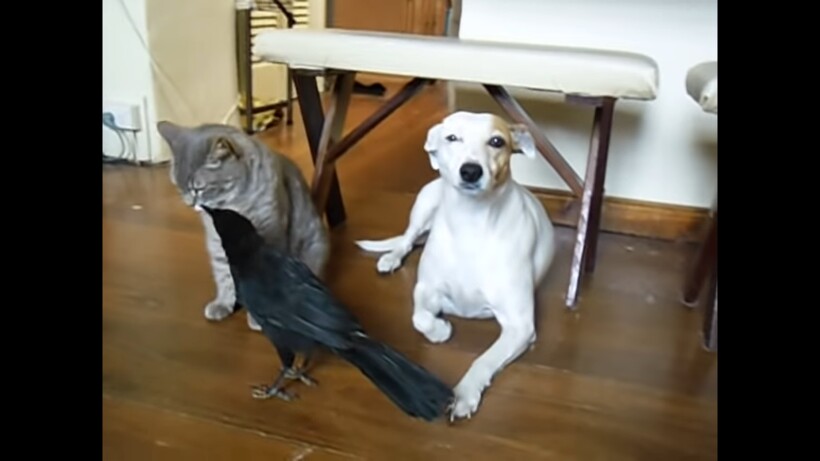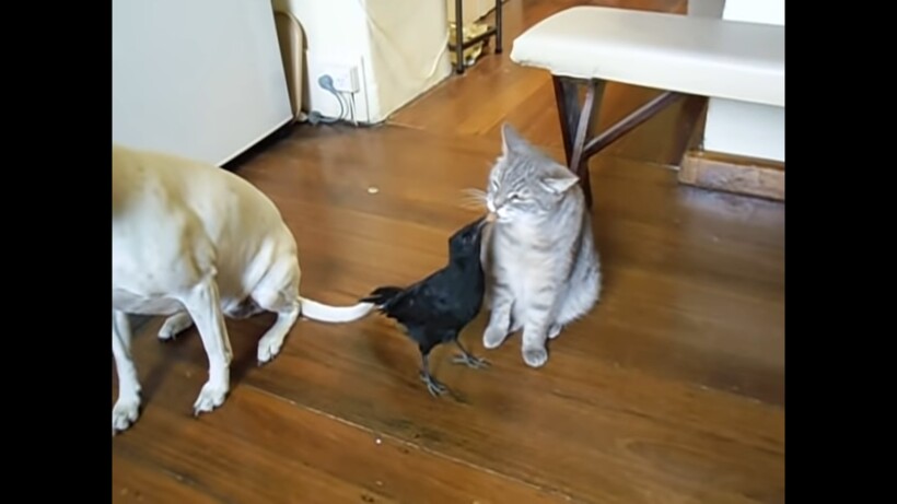 Если у вас нет знакомых и приятелей, которые могли бы помочь в этой ситуации, можно обратиться к вороне. Разумеется, не каждая ворона захочет присматривать за вашими питомцами, но птице из видеоролика ниже это занятие определенно доставляет удовольствие. Она берет клювом корм из миски и относит его кошке. Заботливая птица не обделяет вниманием и собаку. Хозяюшка-ворона следит за порядком, поэтому хозяйке животных вовсе не стоит беспокоиться о состоянии своих питомцев во время командировки. А вы бы доверили этой вороне своих пушистых любимцев?