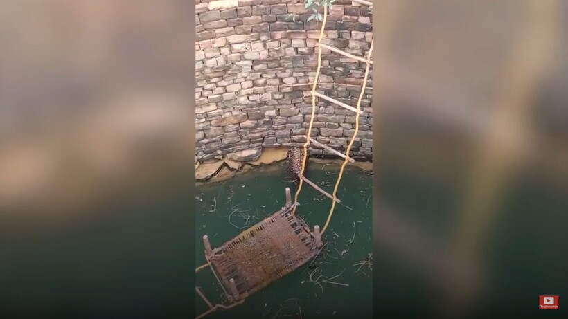 Один из местных жителей отправился к колодцу и заметил там леопарда. Животное было живо, но почти выбилось из сил. Зверь старался цепляться за края колодца и опираться на выступы, чтобы сохранить немного сил. Тогда человек вызвал сотрудников Индийской лесной службы, и они взялись за спасение животного. Спускаться к леопарду было опасно, а предварительно усыплять его транквилизаторами — тоже риск: неизвестно, сколько зверь пробыл в заточении и сможет ли выжить после сильных препаратов. Тогда мужчины решили положиться на смекалку зверя и его жажду жизни.