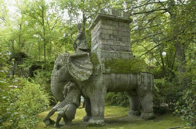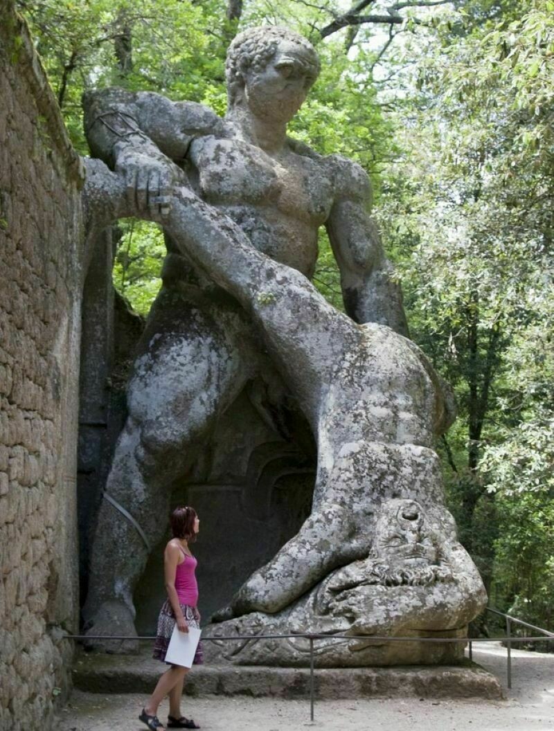 Так почему же этот сад именно чудовищ? Разгадка кроется в его каменных обитателях: здесь вы повстречаете гигантскую скульптуру Геракла, слона Ганнибала, который пожирает свою человеческую жертву, кровожадного пса Цербера.
