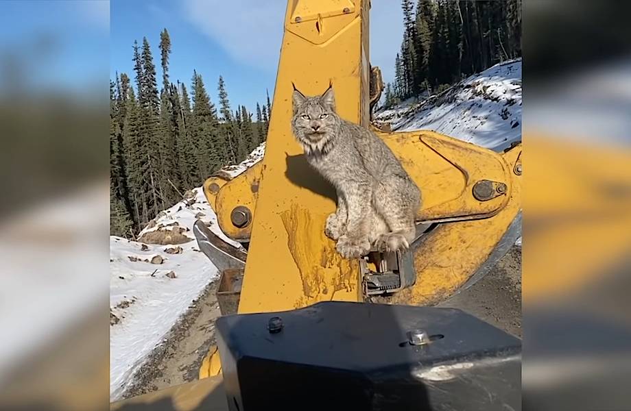 «Я лесоруб из Альберты, Канада. Остановился на дороге на трелевочном тракторе, а когда выглянул из него, к своему большому удивлению увидел рысь, стоящую возле колеса. Я быстро достал телефон и стал снимать видео. Рысь вскочила сначала на шину с цепями, а затем на дугу трактора. Она сидела всего в нескольких метрах от меня и с любопытством разглядывала. Через некоторое время зверь вернулся тем же путем на землю и отправился обратно в лес», — делится впечатлениями автор видео.
