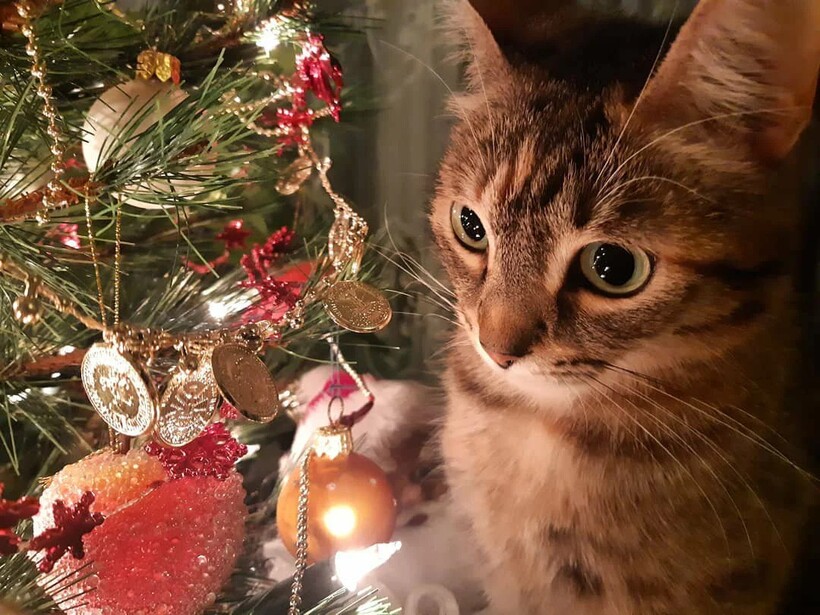 Тем, у кого дома проживают наши пушистые братья меньшие, знакомы постоянные завалы елки, а также снятие с нее игрушек, независимо от высоты их расположения. Этот вопрос можно решить, даже не приклеивая елку к потолку. Вам нужно всего лишь повесить на нижние ветви интересную и безопасную игрушку для животного. Тогда ваш хвостатый друг перестанет на нее залезать и оставит в покое остальные украшения. Чтобы игрушки не пострадали, лучше покупать их в пластиковом виде, а стеклянные советские лучше оставить на память.