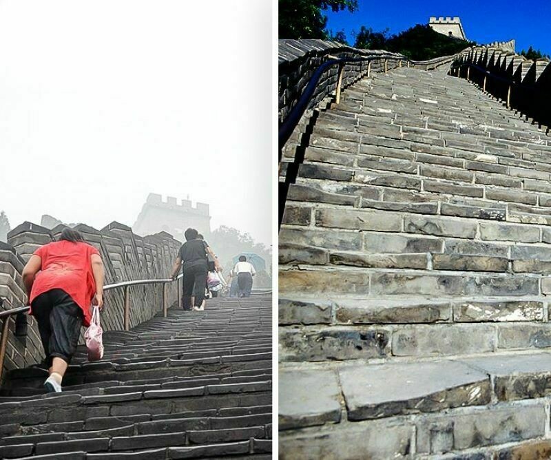 За то время, что туристам можно посещать это сооружение, оно немало натерпелось. Во-первых, нельзя не упомянуть, что стена древняя, поэтому вполне логично, что она обрушивалась в некоторых участках просто из-за своего возраста. Во-вторых, сильно пострадали ступеньки от сотен тысяч туристов: камень продавливается, создаются глубокие вмятины, ведь каждый считает, что если он вдруг не прошелся по китайской стене, то, можно сказать, не посещал сам Китай. И, конечно же, не обходится без многочисленных рисунков, надписей и прочего.