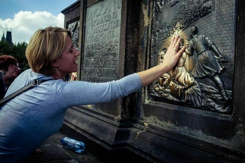 Очень забавный случай, когда достопримечательность страдает и не страдает одновременно: по сути, для привлечения в жизнь счастья и удачи, нужно потрогать изображение Иоанна Непомуцкого, но люди почему-то до дыр протирают рядом сидящую собаку, изображенную там же, на барельефе. От этого есть вероятность, что изображение пса попросту в скором времени сотрется.