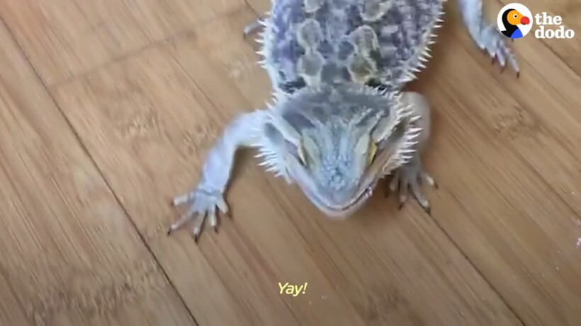 Бородатые драконы все-таки верят в то, что их назвали так неспроста. За все время ролика ящерица пыталась взлететь больше десяти раз. Она уверенно подбегает к краю стола или дивана и отталкивается когтистыми лапами. Пока взлететь ни разу у дракончика еще не получилось. Чтобы он не расстраивался, Мина сделала своему питомцу игрушечные крылья, которые очень органично вписываются в образ рептилии. А вы бы хотели завести ящерицу в качестве домашнего питомца?