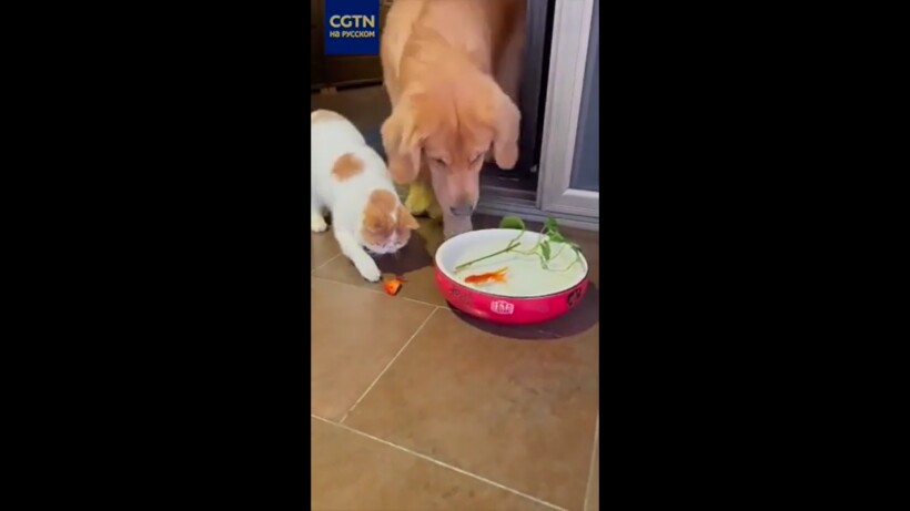 Скорее всего, кот просто заметил, как быстро двигается рыбка в воде, и его привлекло исключительно ее движение. Когда же рыба была на суше, она перестала представлять какой-либо интерес для кота. Супергероем в этой ситуации является собака. Как только пес почувствовал, что в соседней комнате кот нарушает личное пространство других домашних питомцев, он немедленно прибыл для выяснения обстоятельств.