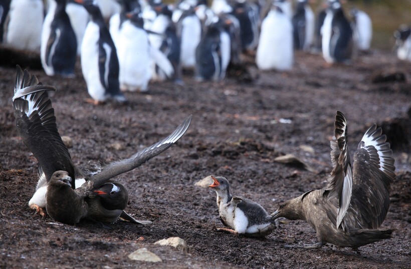 Далее он поясняет: «На это у природы есть свои причины: так как количество льда уменьшается, как и рыбы под ним, то еды на всех не хватает, а потому выживают лишь сильнейшие из птиц. Хищные птицы же обращают внимание на тех птенцов, которых не кормят. Слабые, они являются легкой добычей для плотоядных пернатых соседей. Но чем ближе осень, тем ожесточеннее становятся нападки хищников, и страдают даже сильные птенцы. Все знают, что важно хорошо откормиться перед полетом на зиму в теплые края. Еще несколько лет назад тут был сплошной лед, теперь тут только соленая теплая вода да битые обломки ледяных кусков».