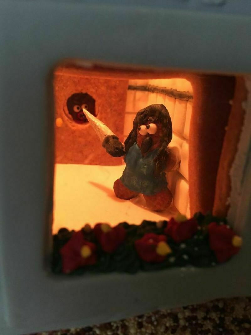 Кто знает, может быть, мы когда-нибудь увидим короткометражный ужастик, в котором декорациями послужат съедобные пряничные домики, изготовленные Аароном Килингом и его домочадцами.