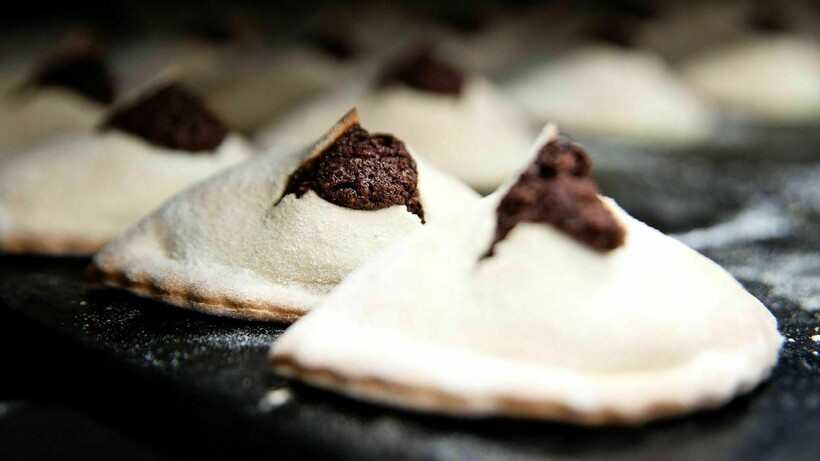 Эти пельмени в форме полумесяца запекаются, и их состав удивителен: там есть шоколад, сахар, цедра лимона, миндаль, яйцо и… фарш! И вкус у них такой, что вряд ли вы догадаетесь о мясном ингредиенте в составе.