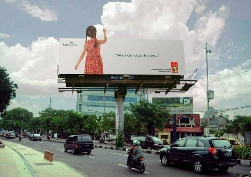 В машинах и в общественном транспорте мы проводим огромное количество времени, а что мы делаем в пробке? Конечно же, разглядываем рекламные щиты. В основном, конечно, реклама вдоль дорог слишком навязчивая и чересчур яркая, ведь она создана для того, чтобы привлечь внимание. Но иногда с этой навязчивостью граничит гениальность, ведь некоторые рекламные плакаты сродни искусству. Возможно, за таким билбордом стоит целая команда, которая пережила мозговой штурм, чтобы появилось нечто интересное и привлекательное, возможно, ее автор ― какой-то скромный гений наших дней. Но некоторые рекламные щиты слишком хороши, чтобы стоять вдоль дорог, и они действительно поражают свой креативностью.