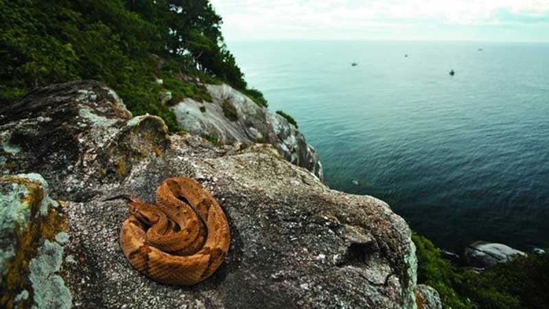 Остров площадью 0,43 кв. км находится в 35 км от Бразилии, а населяют его 4000 смертоносных змей. Самая опасная из них — островной ботропс из семейства гадюк. Это пресмыкающееся способно за секунды убить человека.
