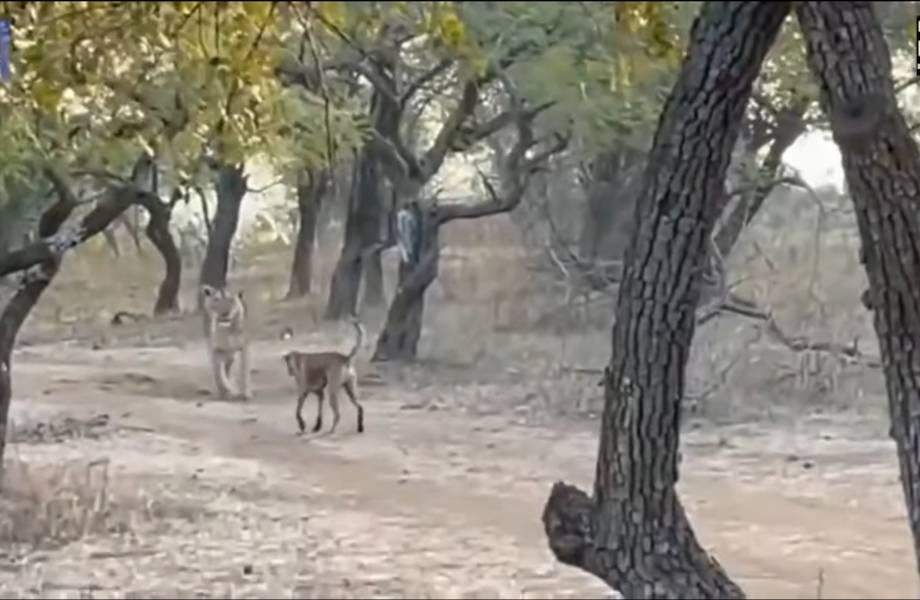 Невзирая на то, что такие хищники очень опасны, некая уличная собака не побоялась проявить себя и вступить в бой с индийским львом. Собака атаковала львицу несколько раз, а затем с гордостью удалилась. Львица, кажется, была обескуражена таким поворотом событий и не стала преследовать своего обидчика.