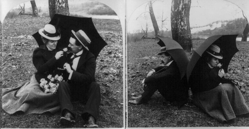 В былые времена одним из самых популярных времяпрепровождений было разглядывание карточек в стереоскоп. Этот прибор придумали с учетом того, что зрение человека бинокулярно. Работал он весьма просто: карточка с двумя одинаковыми изображениями вставлялась в устройство, и из-за того что картинки были под разным углом для каждого глаза, они сливались в единую и казались объемными. В основном на картинках были запечатлены известные достопримечательности или животные, но были и шутливые стереокарточки, за которыми молодая пара могла провести томный вечер.