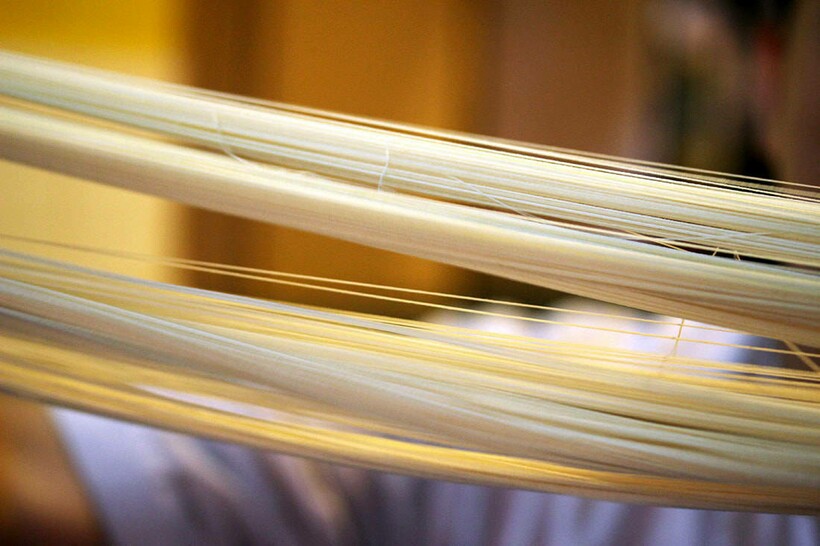 Тесто необходимо вымешивать очень долго руками, ведь только так можно растянуть клейковину ― а это главный секрет, почему получаются такие тонкие и длинные нити.