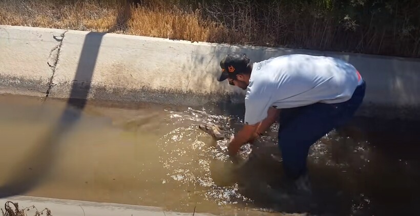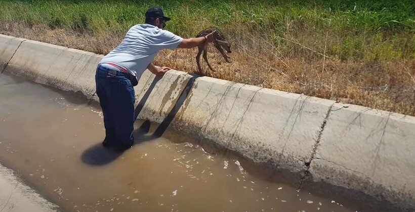 Так получилось, что мужчина и его друг Робби ехали в машине за городом. Рядом с дорогой проходил неглубокий дренажный канал, куда после дождей сливается вода. Именно туда попали два маленьких олененка. Воды было не много, но пологие бетонные стены были слишком высоки для малышей, чтобы выбраться. Робби не раздумывал ни секунды и решил помочь бедолагам, а его друг взял камеру, чтобы запечатлеть спасение животных.