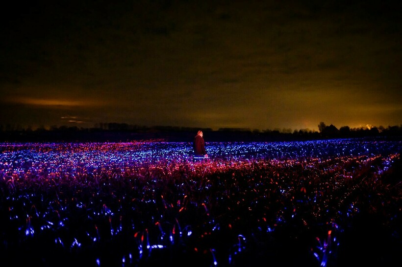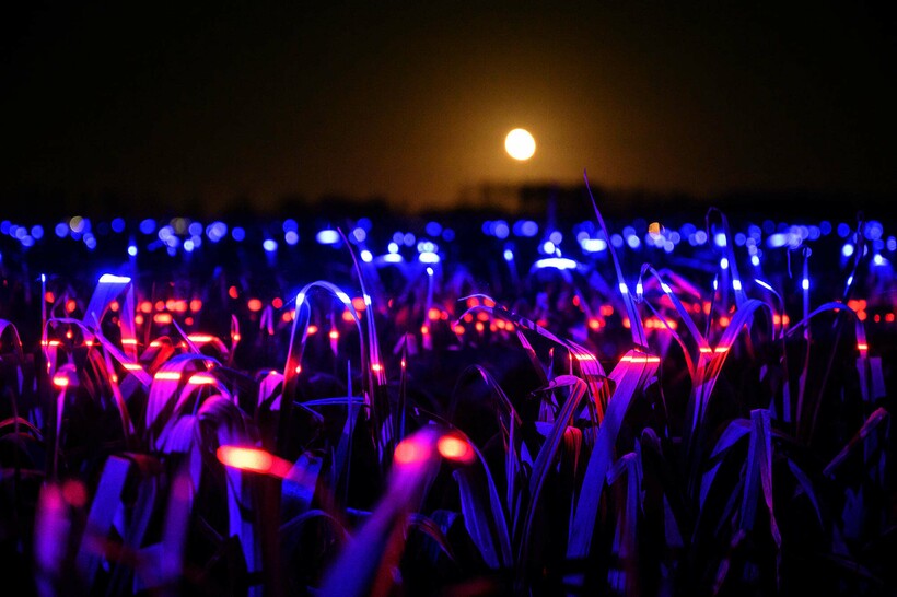 Опыт решили провести на полях с луком-пореем, и 20 тысяч кв. м сельхозугодий теперь подсвечены синим, красным и фиолетовым. А еще эти гигантские поля светлячков ― отличный показатель того, что миры науки, искусства и дизайна могут быть полезны друг другу.