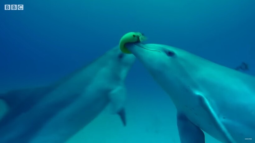 Самая ядовитая рыба в мире, которую мечтают отведать гурманы со всей планеты, называется фугу. Многие готовы платить бешеные деньги за то, чтобы насладиться ее вкусом и добровольно встать на тонкую грань между жизнью и смертью. А дельфины используют этот вид рыбы как средство для расслабления. Муляж фугу был запущен в море с целью посмотреть, как млекопитающие ведут себя с ней. Оказывается, стая дельфинов зачастую выискивает ее специально. Когда цель обнаружена, они начинают свою игру. Дельфины держат во рту рыбу, немного прикусывая ее, чтобы выделить из нее тетродотоксин, небольшая доза которого может ввести животное в состояние транса. Они держат ее некоторое время во рту, а затем выплевывают, передавая ее другим особям.