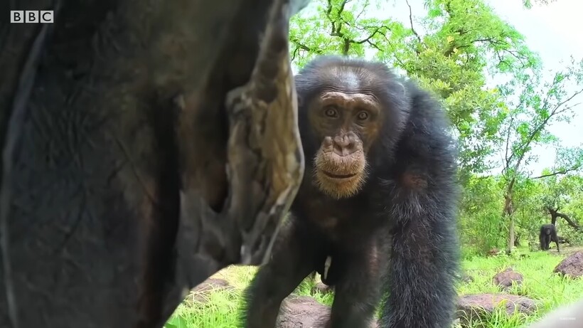 Шпионская черепаха была запущена в место обитания шимпанзе, она понаблюдает, как отреагируют на нее обезьяны. Ее появление вызвало массовый интерес приматов. Одну из особей распирало любопытство, что же это такое? Обезьяна гладила, тыкала пальцем в панцирь, переворачивала и исследовала игрушку. Новые эмоции, кажется, были очень приятными, и шимпанзе быстро поволокла шпиона в свое укромное местечко.