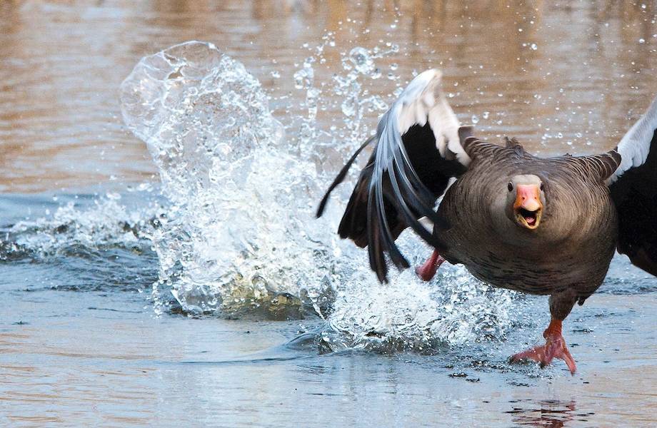 Его не смутило даже то, что автомат солдата был вполне настоящим. Удивленный военный просто остановился на месте и опустил глаза на вцепившегося в его ногу гуся. Солдат пытался понять, чем он мог так сильно разозлить птицу. На выяснение обстоятельств понадобилось бы много времени, поэтому враждующие стороны решили просто заключить перемирие. По хитрым глазам гуся можно сделать вывод, кто из них нарушит это перемирие первым. А вы бы могли подумать, что разъяренный гусь может стать настоящей угрозой для армии?