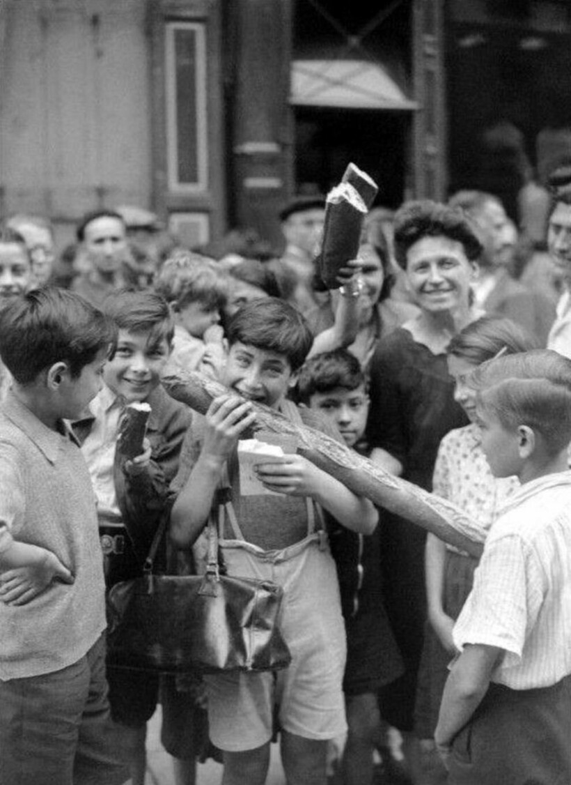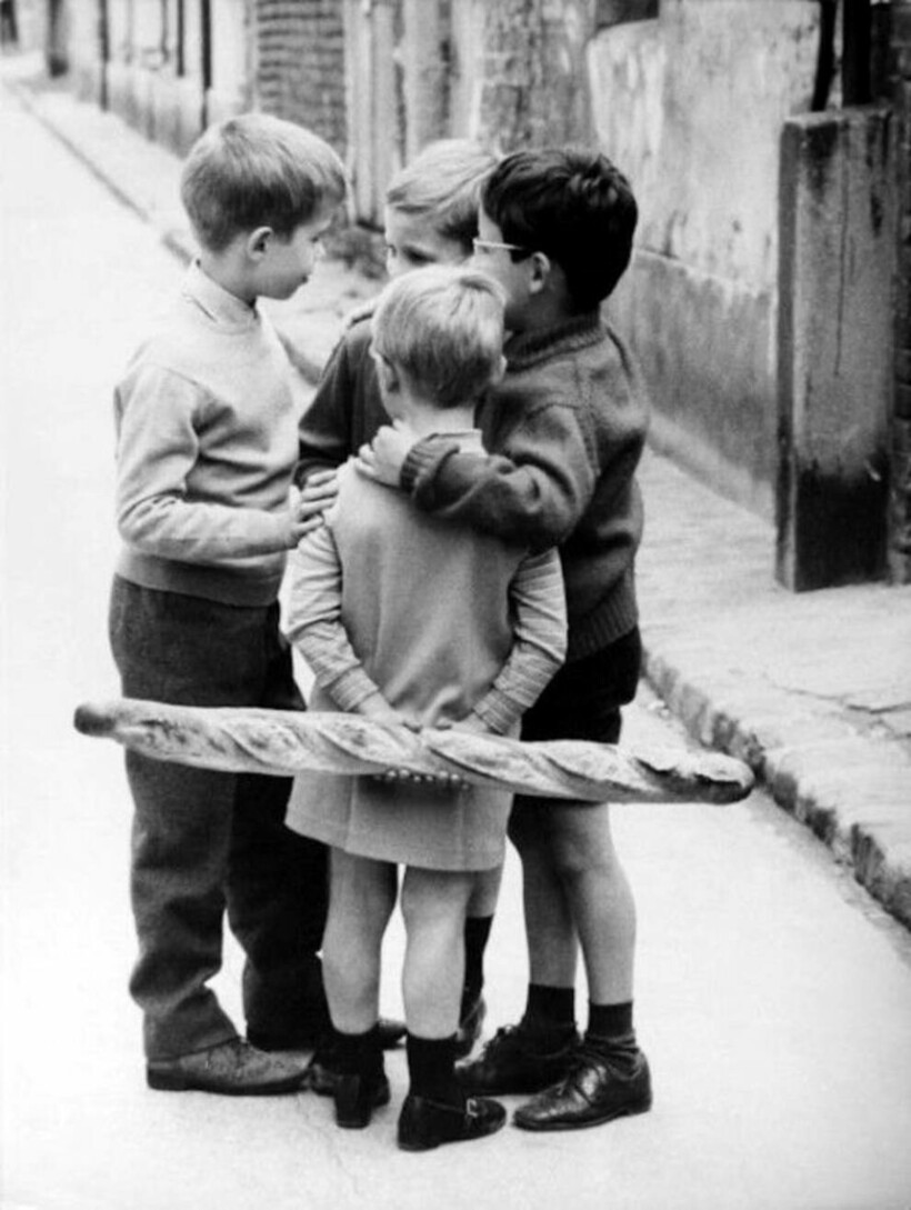 И поверьте, сто лет назад ситуация с французами, гуляющими по улицам с багетами, была точно такая же. Разве что размер хлеба мог быть больше. В булочную отправлялись как взрослые, так и дети. Мы отыскали очаровательные снимки юных французов, которых фотографы поймали как раз за этим занятием.