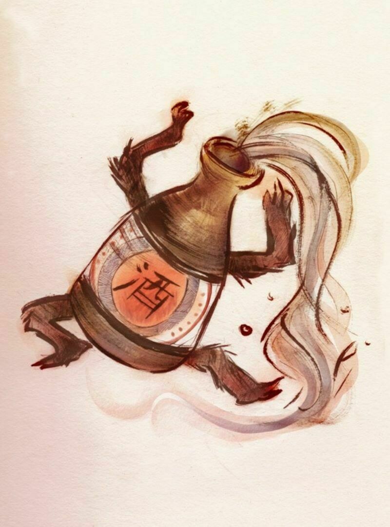 Странный дух. Это бутылка из-под сакэ, которая пролежала где-то сто лет и обрела душу. Теперь она может снова и снова наполняться, сколько бы из нее ни выливали. Считается, что камэоса обитает в доме добрых, а главное, гостеприимных людей.