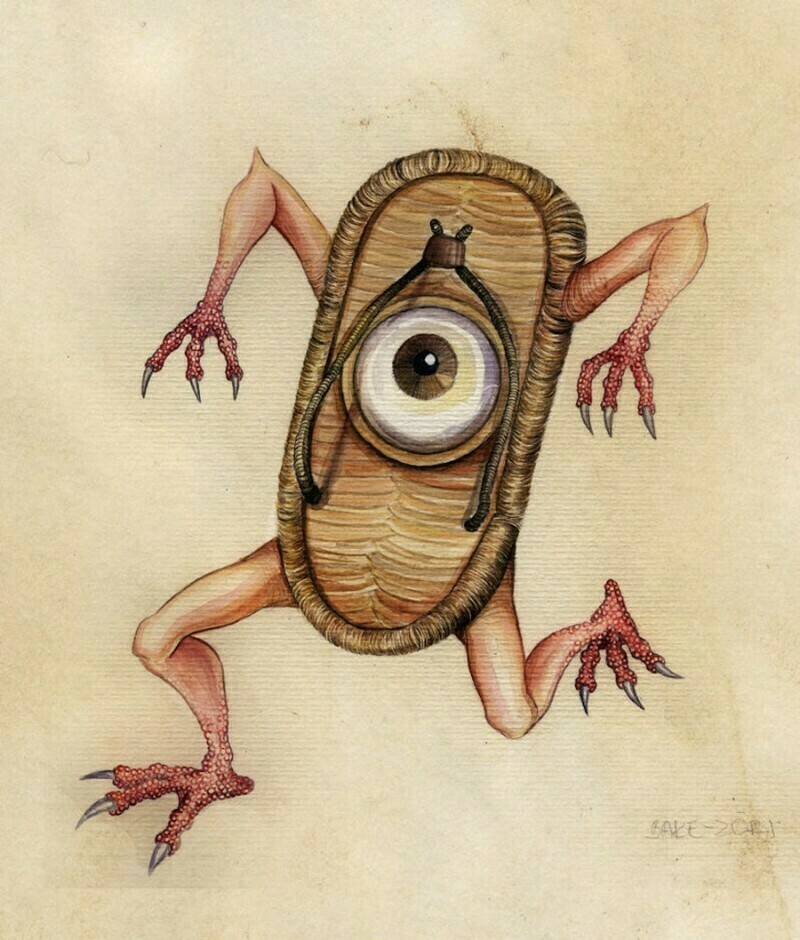 Это злобный дух старой столетней сандалии, которую делали из соломы, — дзори. Почему он злой? Считается, что если человек неаккуратно обращается со своей обувью, то в доме заведется обувной барабашка — бакэ-дзори.